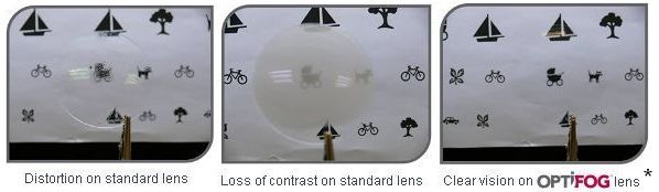 由霧氣造成的微細水點完全覆蓋於鏡片表面,形成一層不為配戴者所見的霧氣層。 無論您的鏡片矯正哪種視力問題,均可使用Optifog 。